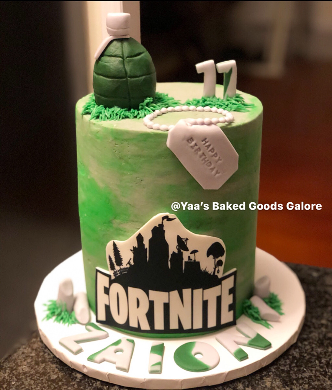 6″ Vanilla & Red velvet marble Fortnite themed birthday cake