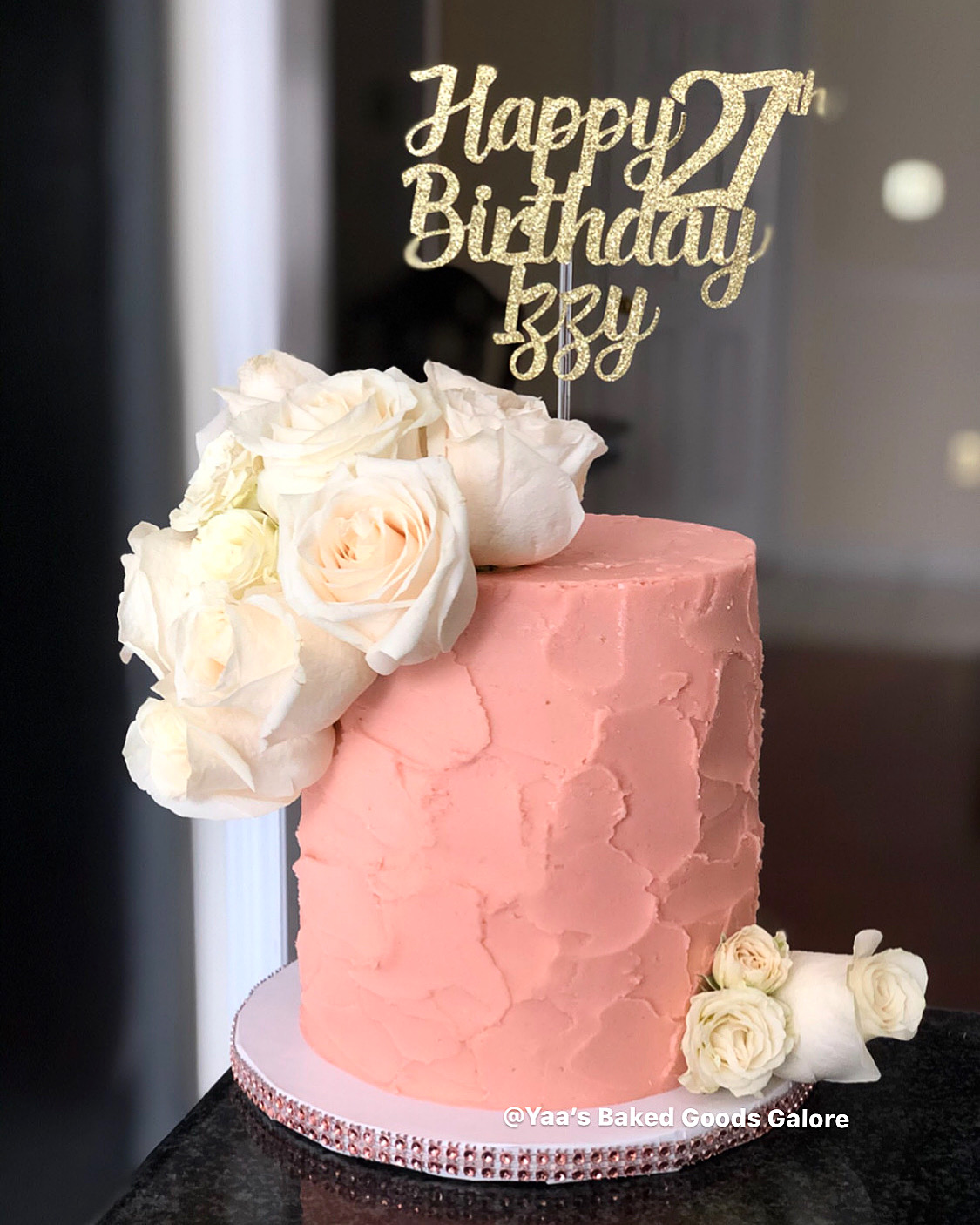 6″ Vanilla textured buttercream birthday cake with fresh roses